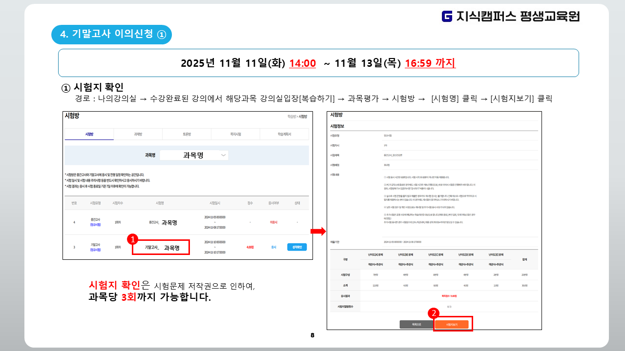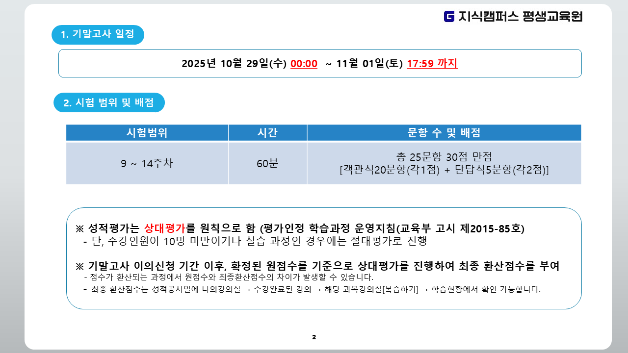 2025년 2학기 5차(7월 25일 개강반) 기말고사 일정 안내