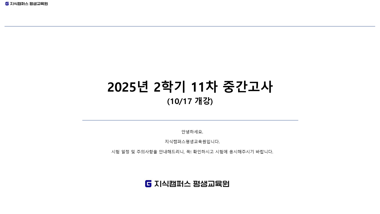 2025년 2학기 11차(10월 17일 개강반) 중간고사 일정 안내