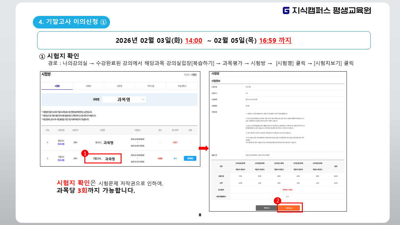 2025년 2학기 11차(10월 17일 개강반) 기말고사 일정 안내