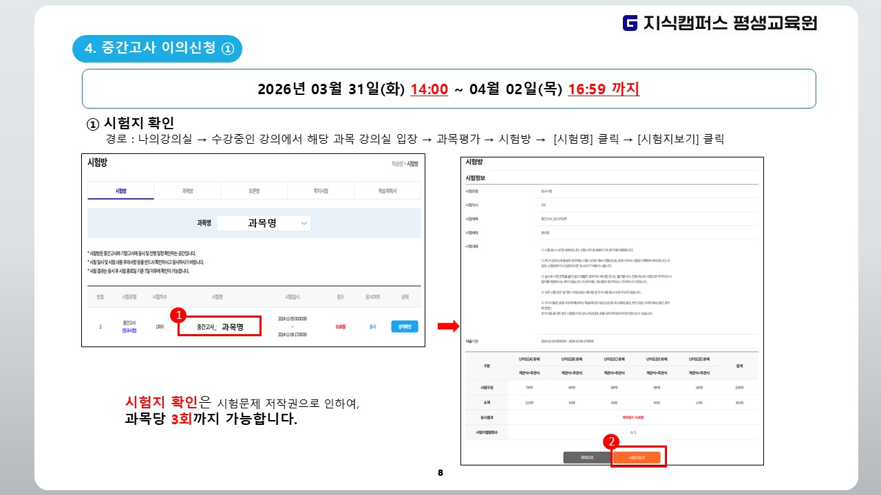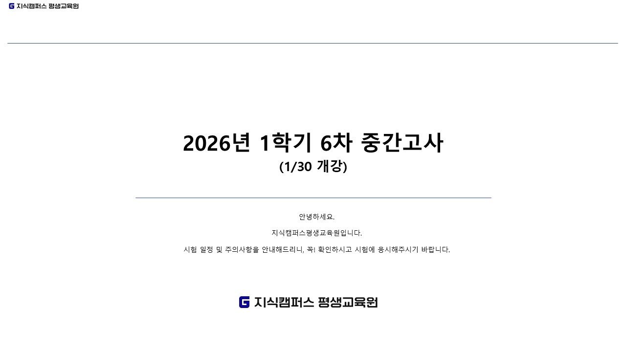 2026년 1학기 6차(1월 30일 개강반) 중간고사 일정 안내