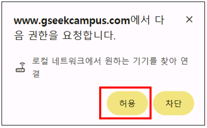 크롬 및 엣지 브라우저가 141 버전으로 업그레이드됨에 따라, PC 환경에서 - 공동인증서 로그인 프로그램(SecuKitNXS)을 이용한 공동인증서 로그인 오류 또는 - 윤디스크(MAC_Address) 수강컴퓨터 등록 오류 발생 가능성이 있습니다. ※ 브라우저 업그레이드시 '로컬 네트워크 액세스(Local Network Access)' 제한 정책으로 인함 이에 따라 다음과 같이 해결 방법을 안내드리오니, 오류 발생 시 참고해주시기 바랍니다.
