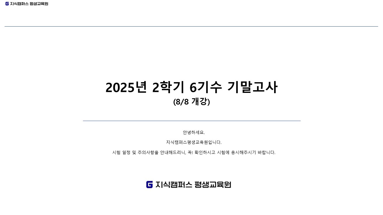 2025년 2학기 6차(8월 8일 개강반) 기말고사 일정 안내